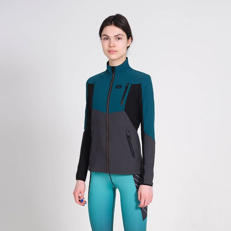 - Плечи и спинка выполнены из сверхэластичного сотшелла для более комфортной посадки.