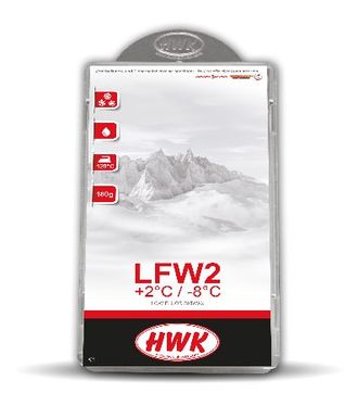 Низкофторовый парафин HWK LFW2 идеально подходит для всех типов снега при температуре +2°C...-8°C и невысокой влажности.